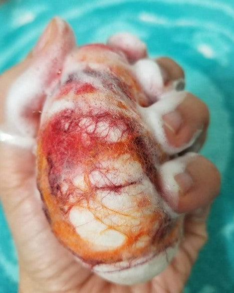 Care Instructions: Make sure to store your handmade soap in a dry, well-ventilated area on a soap dish to help it last longer and prevent melting. Our felted design ensures a longer-lasting bar of soap as the wool shrinks to size of soap.
